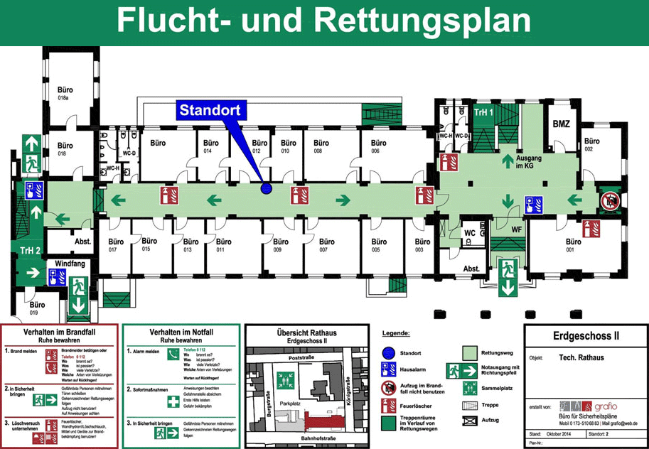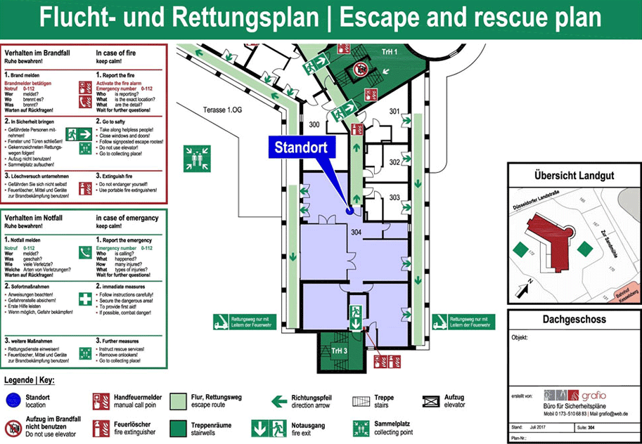 Flucht- und Rettungspläne müssen auf aktuellem Stand gehalten werden.